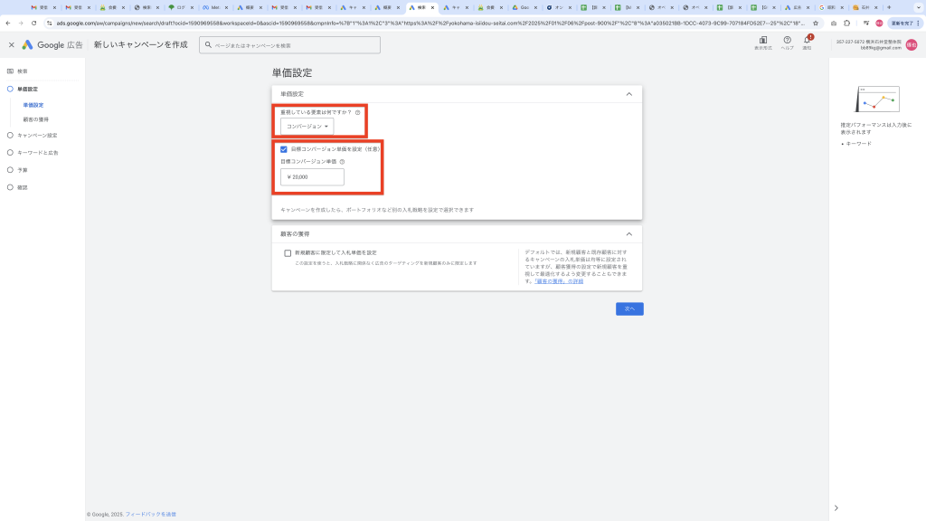 ステップ1 目標コンバージョン単価の最大化(目標CPA20,000円)