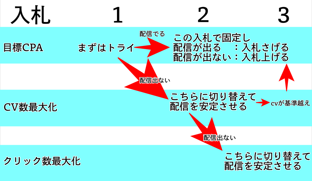 →入札単価を上げる(目標CPA20%増)