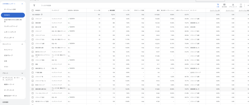 これらの検索語句からユーザーが何を考えて検索をしているのかを予想し、その内容を解決できると思える広告アセット(見出し・説明文)を作成する