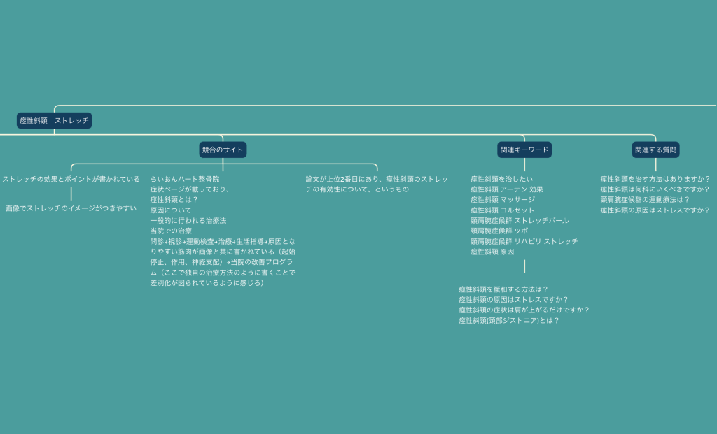 また「痙性斜頸 ストレッチ」という検索語句で調べたユーザーはストレッチの方法が一番知りたいと考察できる。