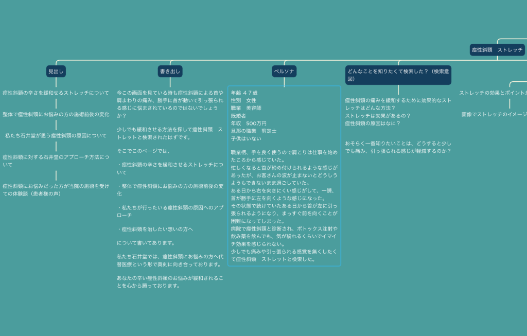 頸肩腕症候群も織り交ぜて書くと一貫性が崩れるので、「頸肩腕症候群」という別のコンテンツを作成し、「痙性斜頸 ストレッチ」のコンテンツの中にリンクとして結びつける。