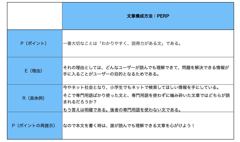 このようにPERPを意識して書くとユーザーに理解しやすい構成となる。